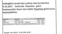 09 EKI KURS BİLGİSİ 9.10.2017 Site Yönetimimizde Halkeğitim tarafından verilecek olan kurslarımız 9.10.2017 tarihinde başlayacaktır.Kayıtlı olan kişiler...